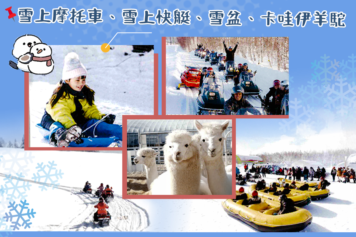 ★雪上活動,為套裝行程,無法配合貴賓單項選擇,不克體驗,及受年齡限制不宜搭乘的孩童部分,恕無法退費,屆時敬請見諒!!雪上動力活動,為孩童安全考量,需大人陪同搭乘,懇請諸位貴賓配合!特此感謝!。